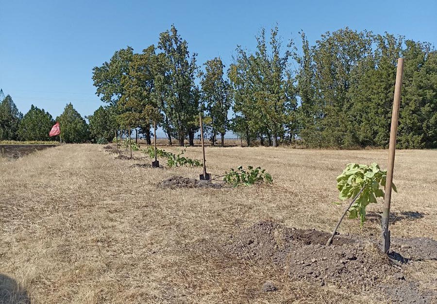 Висаджування дерев в заповіднику – то для галочки, головне – щоб окупантська преса червоні прапори познімати встигла. Фото з пропагандистського медіаресурсу.