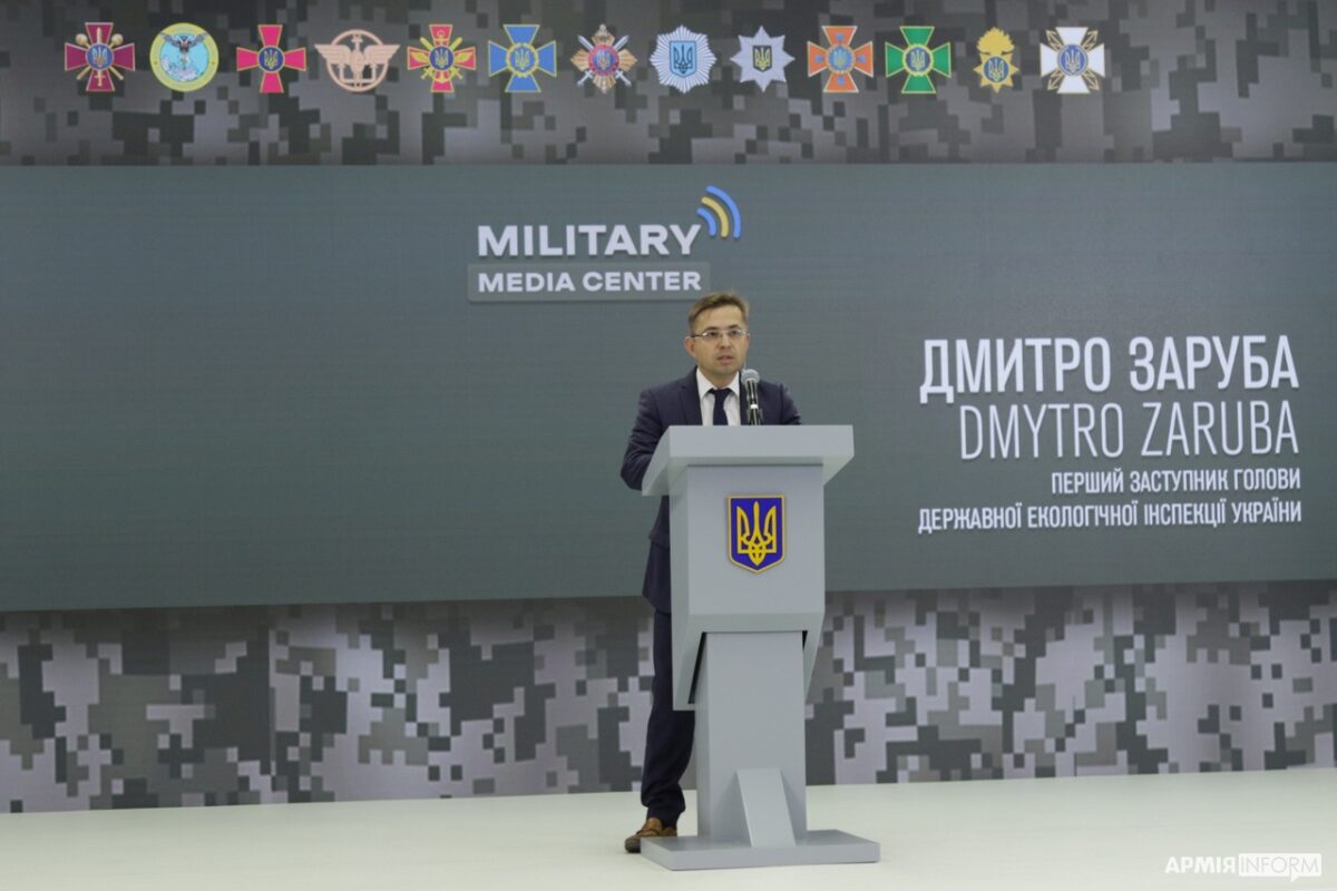 Дмитро Заруба. Фото: Сергій Місюра / АрміяInformСерйозну загрозу довкіллю становлять вибухонебезпечні предмети. За словами першого заступника голови Держекоінспекції України, постраждалі від акту російського екоциду території важко розміновувати через мул. Роботи на таких ґрунтах можуть зайняти до 15 років.