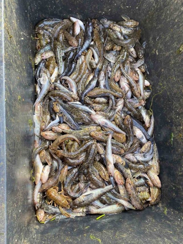 У Дніпро-Бузькому лимані поблизу села Станіслав на Херсонщині співробітники Державної екологічної інспекції Південного округу спільно з Херсонською водною поліцією виявили порушників, які на човні ловили рибу й раків.Про це повідомила в Telegram Державна екологічна інспекція Південного округу.За даними інспекції, браконьєри за допомогою месингових сіток та бичкових ятерів впіймали 963 жабоголових бички, чотири сріблястих карасі, сазана, товстолобика та 85 річкових раків.
