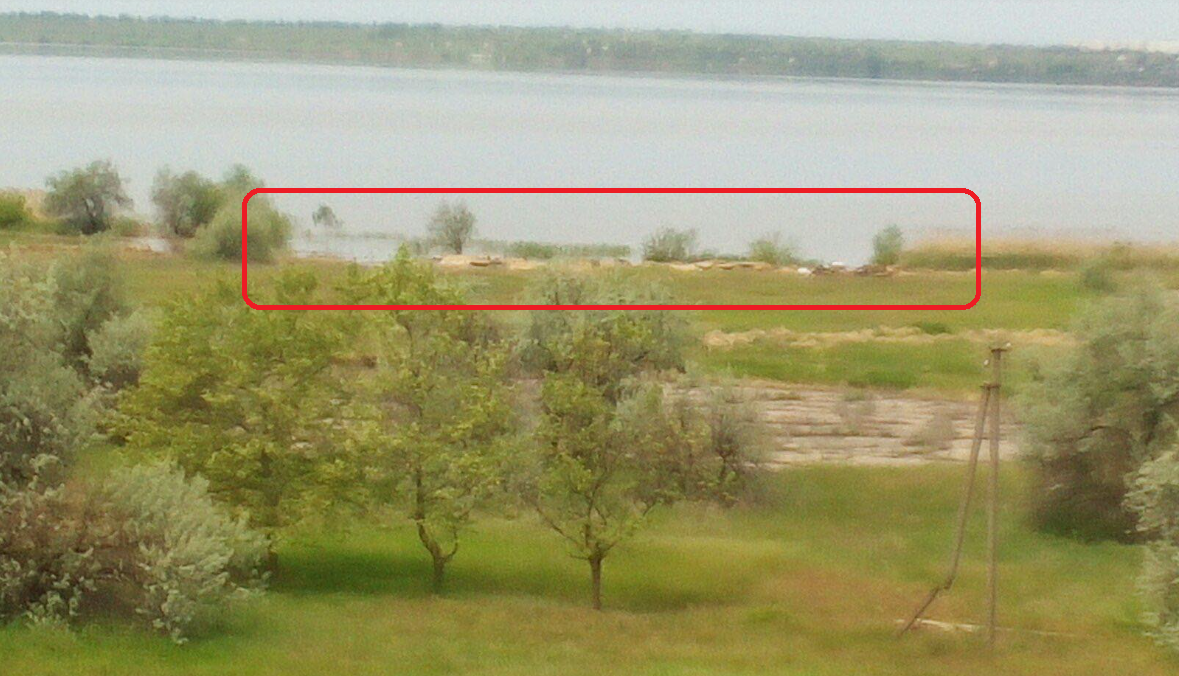 Узбережжя Дніпра біля Каховки з затопленими окопами окупантів на березі Каховського водосховища. Фото: investigator.org.ua