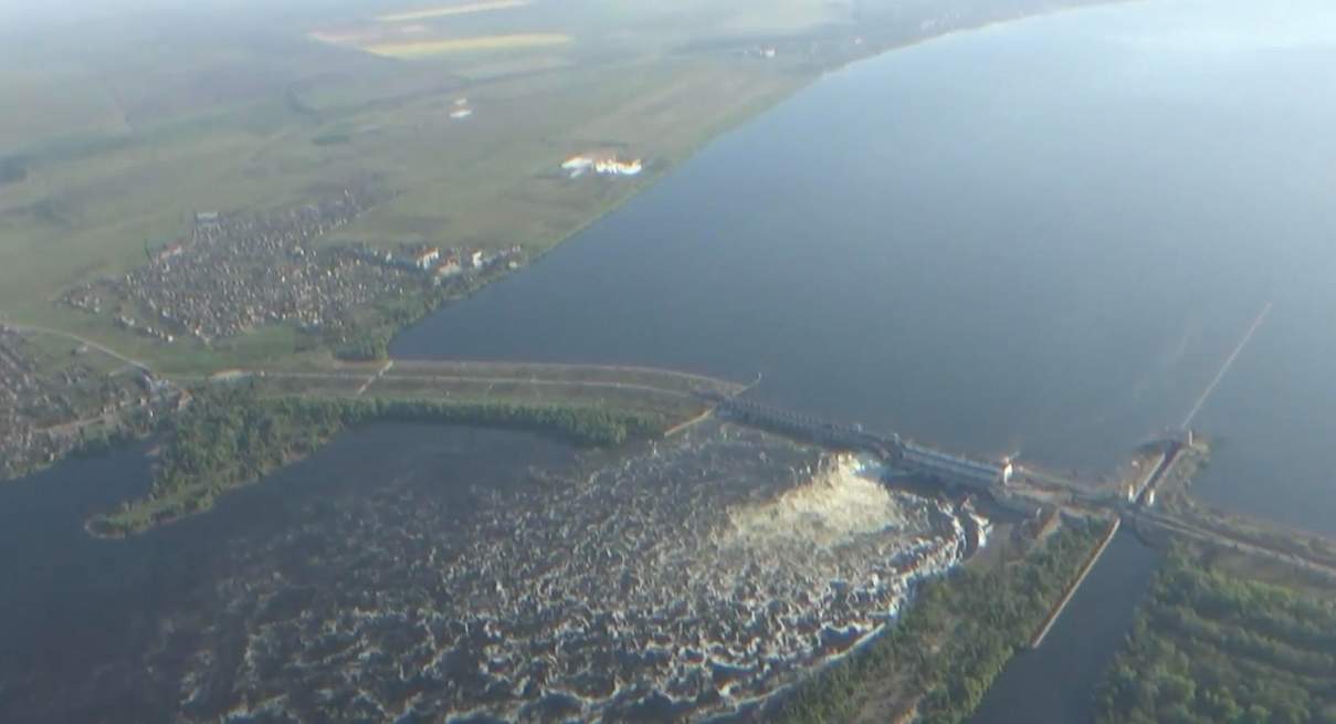 На відзнятому 11 травня 2023 року відео видно, що через відкриті і частково зруйновані окупантами шандори Каховської ГЕС неконтрольовано витікають потужні потоки води. Видно також підвищений рівень води в Дніпрі і підтоплене узбережжя в Новій Каховці.