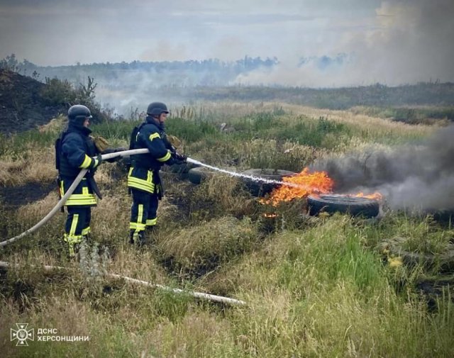 Протягом доби через ворожі атаки виникло 4 пожежі сухостою на відкритих територіях загальною площею 1,07 гектари.Про це повідомляє пресслужба ДСНС Херсонської області.Також окупанти за допомогою БПЛА скинули вибухівку на два поля з пшеницею, площа пожеж склала 3,5 та 4,5 гектари. Всі пожежі було ліквідовано силами пожежно-рятувальних підрозділів та командами місцевих пожежних охорон.