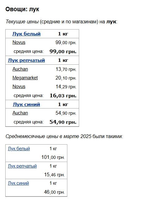 Щодо цибулі, спостерігається різноспрямована динаміка залежно від сорту. Білу цибулю стало купувати вигідніше – її ціна знизилася зі 101 до 99 грн за кілограм. Ріпчаста цибуля подорожчала з 15,46 до 16,03 грн. Найбільш помітні зміни відбулися з червоною цибулею, ціна якої зросла з 46 до 54,90 грн.