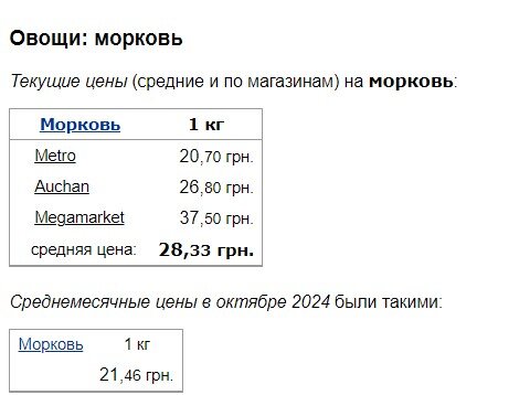 У свою чергу морква стала дорожчою майже на 7 гривень, до 28,33 грн/кг.
