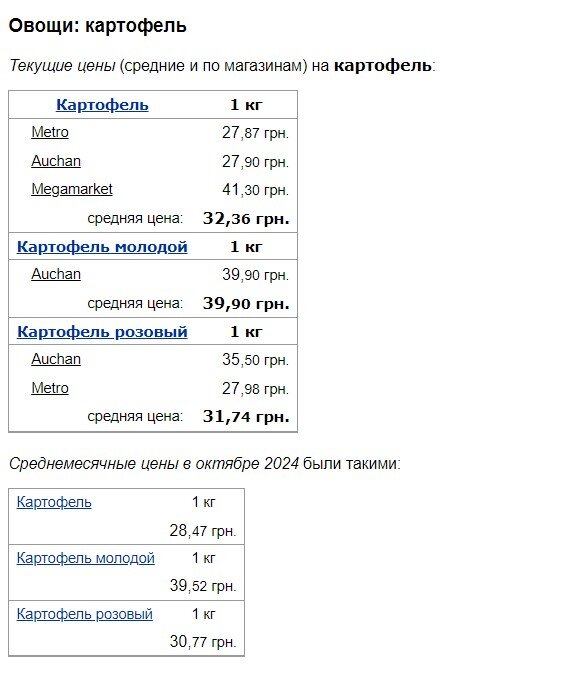 Зокрема, один із найпопулярніших овочів – картопля, подорожчала з 28,47 грн/кг до 32,36 грн/кш. Молода картопля продається по 39,90 грн/кг.
