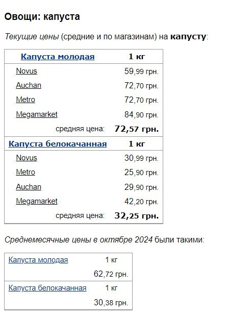 Молода капуста порівняно з минулим місяцем зросла з 62,72 грн/кг до 72,57 грн/кг. Цінник на білокачанну підвищився з 30,38 грн/кг до 32,25 грн/кг.