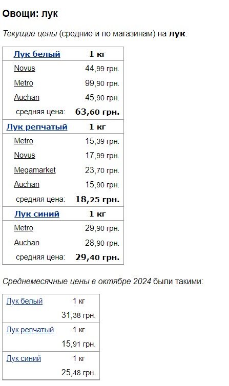Середня вартість білої цибулі злетіла з 31,38 грн/кг до 63,60 грн/кг. Ріпчаста подорожчала менш значно – з 15,91 грн/кг до 18,25 грн/кг. А ось синя додала у ціні з 25,48 грн/кг до 29,40 грн/кг.