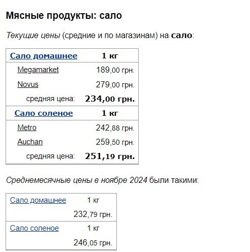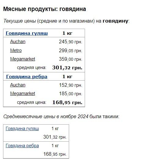 Ціни на яловичину в УкраїніСупермаркети оновили ціни на яловичину та сало перед новорічними святами.Як передає "Хвиля", про це свідчать дані порталу Мінфін.Напередодні новорічних свят українські покупці уважно стежать за цінами на м'ясні продукти, плануючи святкове меню для сімейних застіль.За даними моніторингу цін у великих торгових мережах, у грудні 2024 року спостерігається незначне зростання цін на м'ясні продукти порівняно з листопадом.