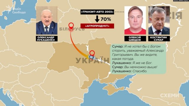 Журналісти встановили, що "Агропродукт" має зв’язки з білоруською владою. Співзасновницею підприємства є білоруська компанія "Транзит-Авто 2003". Її власник Олексій Шведов регулярно відвідував Україну разом із співробітником Управління справами президента Білорусі Олександром Зайцевим та ексгубернатором Брестської області Костянтином Сумаром, який називав самопроголошеного президента Білорусі Олександра Лукашенка "трохи вищим за Бога", йшлося у медіа.