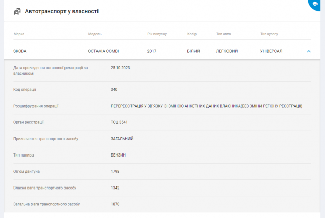 Авто Skoda Octavia 2017 року випуску. Це єдина закупівля підприємиці за бюджетні кошти. Загалом Наталія Бурякова займається нерухомістю.