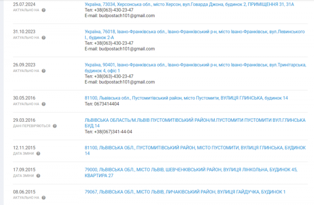 ТОВ «Будпостач-СТСВ» трохи більш як дев’ять років зареєстроване. Базується нині в Херсоні, але лише з липня 2024 року. До того мало іванофранківську та львівську реєстрації. Директор при цьому не змінювався з 2023 року.