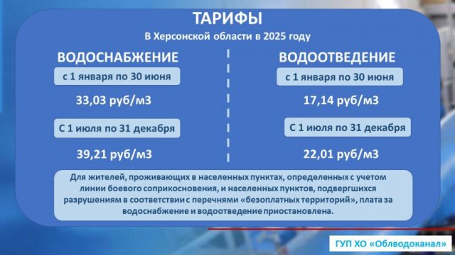З 1 березня 2025 року російська окупаційна влада зобовʼязала мешканців тимчасово окупованої частини Херсонщини платити їй за комунальні послуги. Заявляли, що розцінки на них будуть на 55% нижчі, ніж у середньому по Росії. Однак у дійсності розміри запроваджених окупантами тарифів і жорсткі вимоги щодо їх стягнення шокували багатьох людей.