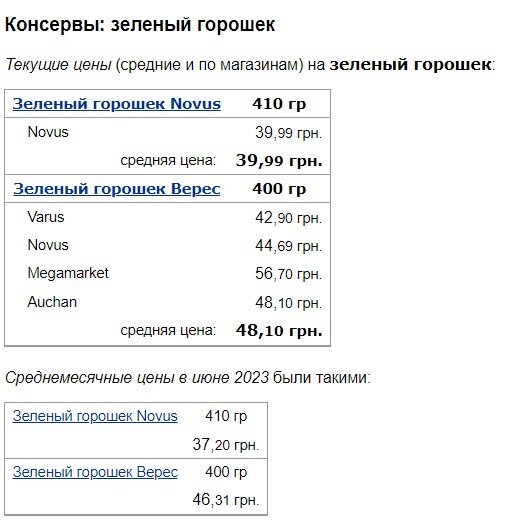 Великі супермаркети показали, скільки коштує консервація в Україні наприкінці липня.Як передає "Хвиля", про це свідчать дані порталу Мінфін.Так, якщо порівнювати з минулим місяцем, то ціни на деяку консервацію вже встигли зрости.Небагато виріс у ціні і зелений горошок Novus з 37,20 грн до 39,99 грн за 410 грам.