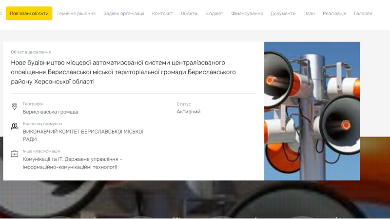 У Херсонській області розпочали ініціативу з будівництва системи централізованого оповіщення, яка забезпечить швидке інформування населення про потенційні загрози та надзвичайні ситуації. Для реалізації цього проєкту планується залучити понад 5 мільйонів гривень.Як повідомив Центр публічних розслідувань з посиланням на екосистему DREAM, проєкт передбачає створення місцевої автоматизованої системи оповіщення для Бериславської міської територіальної громади.