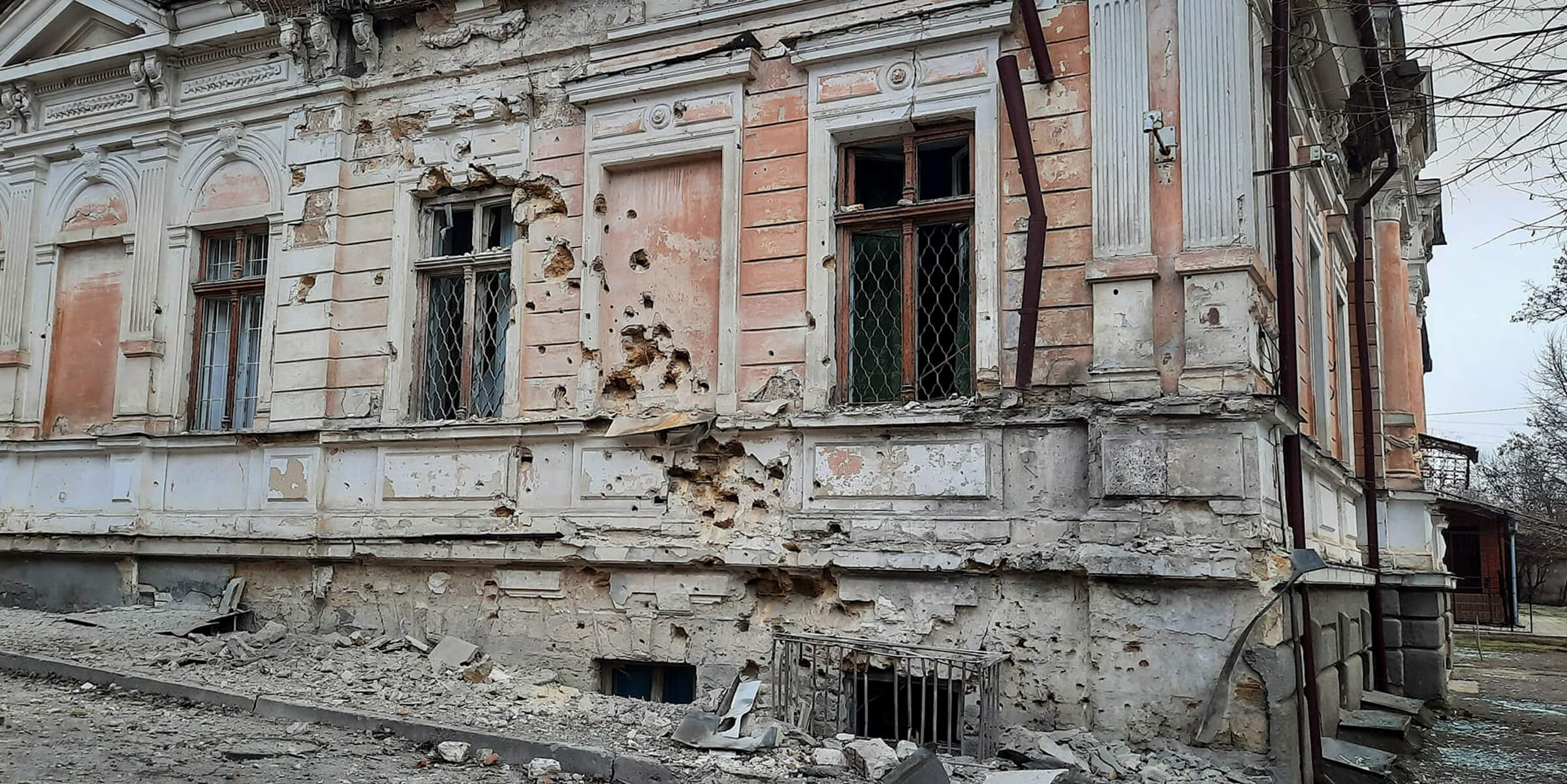 Корпус Херсонського обласного архіву після обстрілу міста російськими військами у ніч на 3 лютого 2023 року. Фото: фейсбук-сторінка Державного архіву Херсонської області