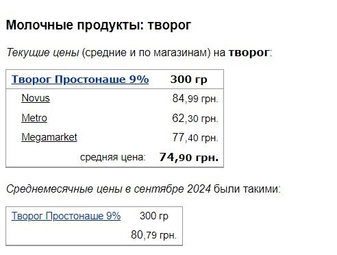 А ось сир 9% став дешевшим у порівнянні з минулим місяцем. Його вартість опустилася з 80,79 грн до 74,90 грн за 300 грам. Якщо Метро пропонує його за 62,30 грн, то в Новус доведеться віддати 84,99 грн.