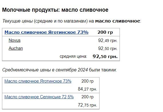 Тим часом, вершкове масло Яготинське 73% зросло в ціні з 84,27 грн до 92,50 грн за 200 грам.