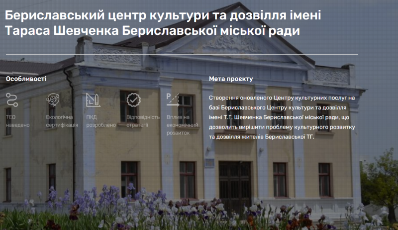 Згідно з описом проєкту, створення такого центру культури дозволить розв'язати проблему культурного розвитку та дозвілля жителів Бериславської територіальної громади.Бюджет проєкту складає 51 мільйон 200 тисяч гривень. На капітальні витрати має піти 50 мільйонів, на операційні, які складається з проєктно-вишукувальних робіт, 1 мільйон 200 тисяч гривень.