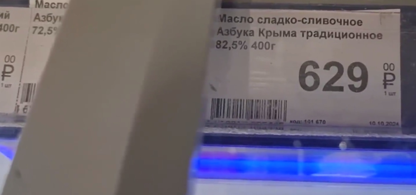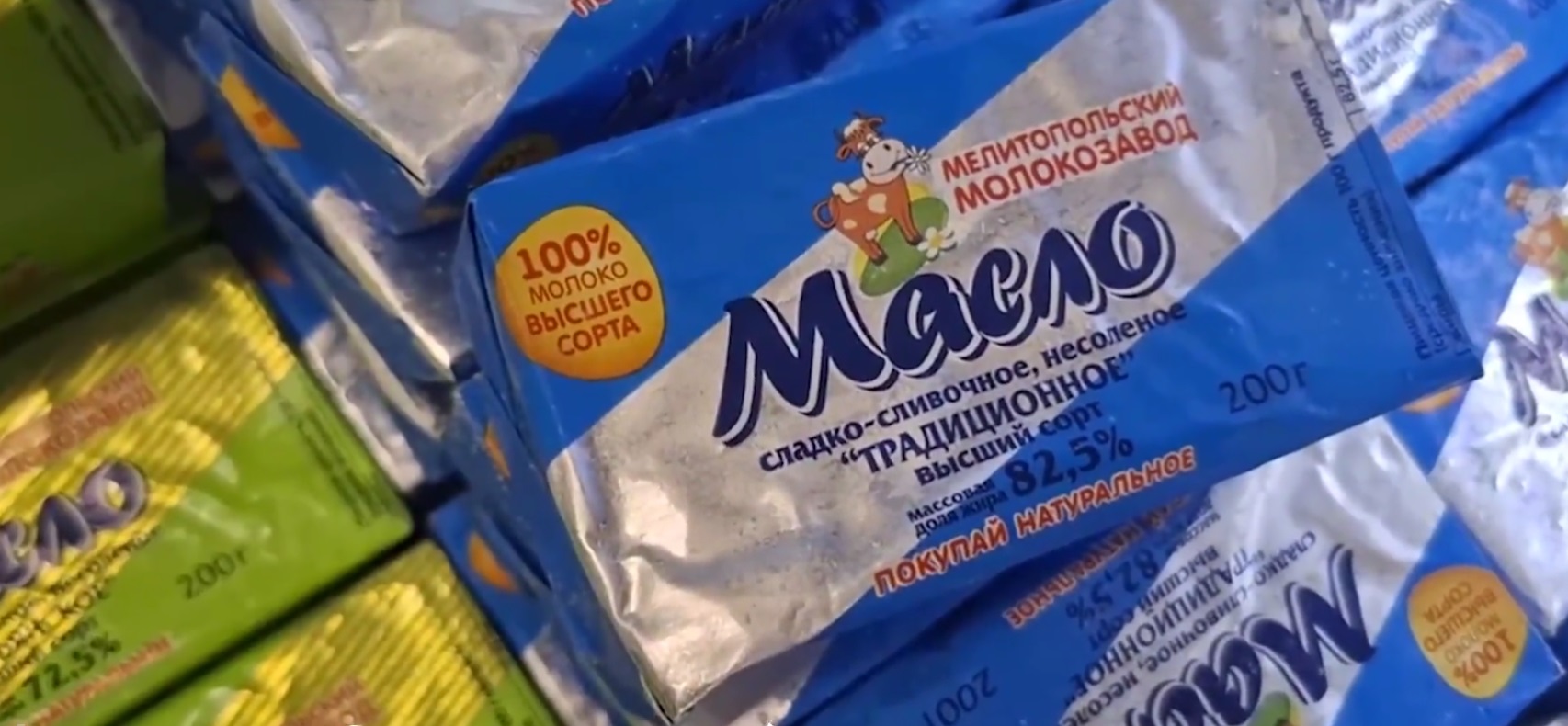 Вершкове масло з Криму у Мелітополі. Фото: скріншот відео окупаційних паблків