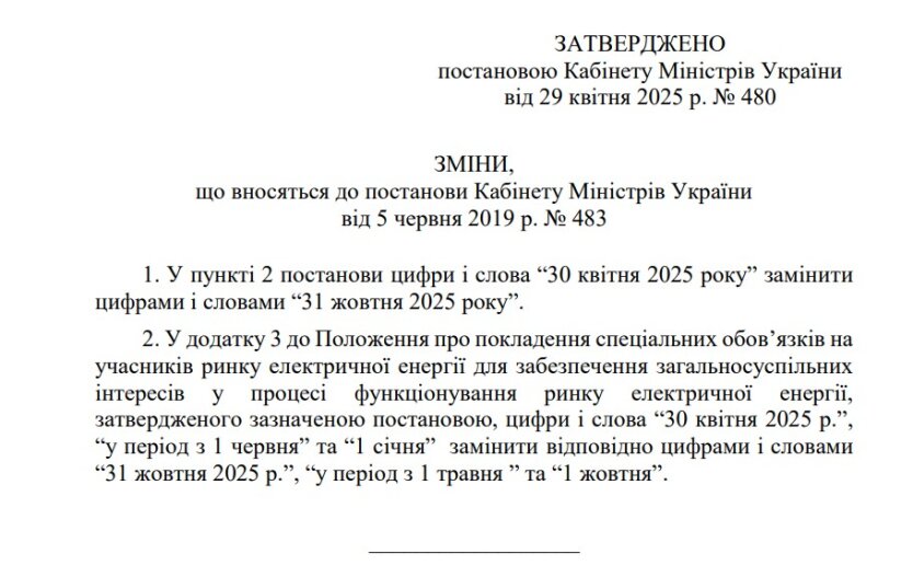"У пункті 2 постанови цифри і слова "30 квітня 2025 року" замінити цифрами і словами "31 жовтня 2025 року", — йдеться в доповненні до документа.