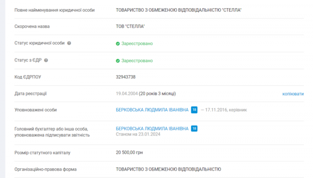 Нещодавно єдиний засновник і директор компанії Набойченко Євген Олександрович закрив свій ФОП. Один Один із телефонів, зазначений в реєстраційних документах ФОП, підписаний в Гетконтакт як телефон Берковської Людмили Іванівни і навіть вказана її електронна пошта. А вже у неї досвіду виконання ремонтних робіт – понад 20 років у складі компанії «Стелла».
