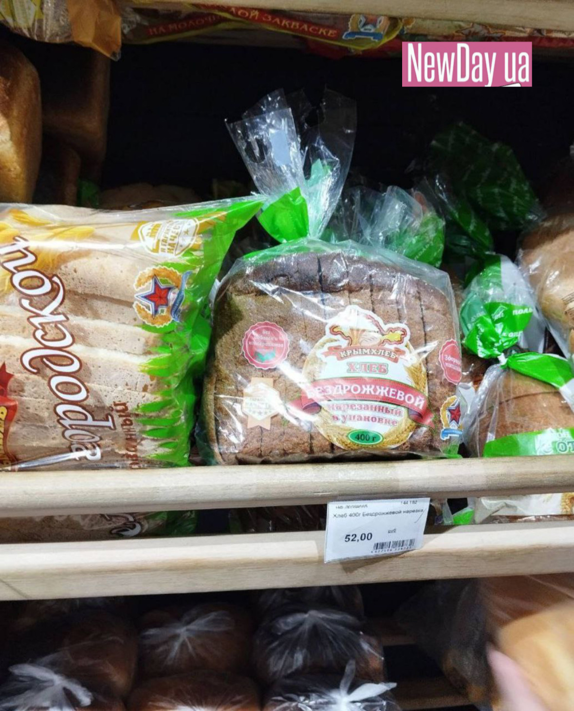 400-грамовий бездріжджовий нарізаний кримський хліб коштує 52 рублі, однак є і доступний для пенсіонерів (так званий соціальний) пшеничний хліб з борошна гіршої якості, який коштує 17 рублів за півкіло.