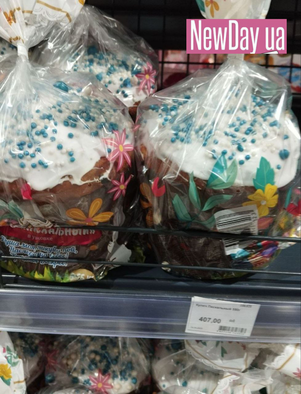 Після Великодня на полицях залишились і дорогі паски, спечені у сусідньому Криму. Звичайний кондитерський виріб вагою 550 грамів коштує 407 рублів.
