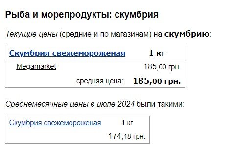 Цінник на свіжоморожену скумбрію зріс із 174,18 грн/кг до 185,00 грн/кг.