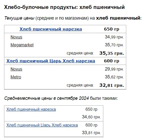 Хлібобулочні вироби показали стриманіше зростання. Ціна на пшеничний хліб (нарізка 650 г) збільшилася з 34,60 до 35,35 грн, а "Цар Хліб" (600 г) - з 33,81 до 32,81 грн.