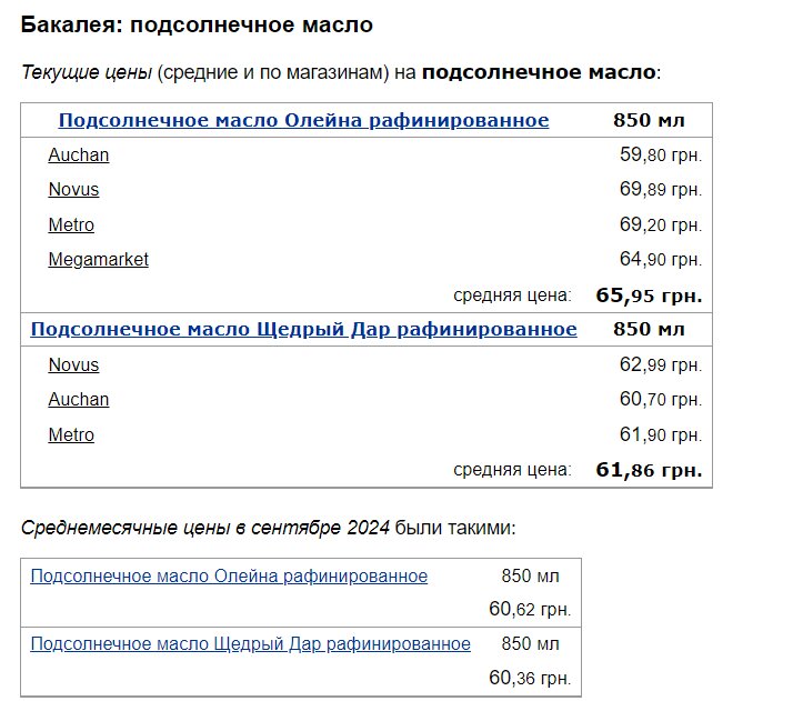 Що стосується олії, то тут спостерігається найбільш суттєве підвищення. Олія "Олейна" (850 мл) подорожчала з 60,62 до 65,95 грн, а "Щедрий Дар" (850 мл) - з 60,36 до 61,86 грн.