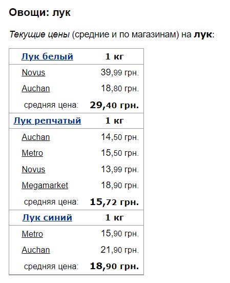 У супермаркетах ціни цибулю варіюють від 13,99 до 18,90 гривень за кіло, в середньому становлячи 15,72 грн. Ринкові ціни на цибулю перебувають у діапазоні 13-17 гривень, що загалом можна порівняти з магазинними.