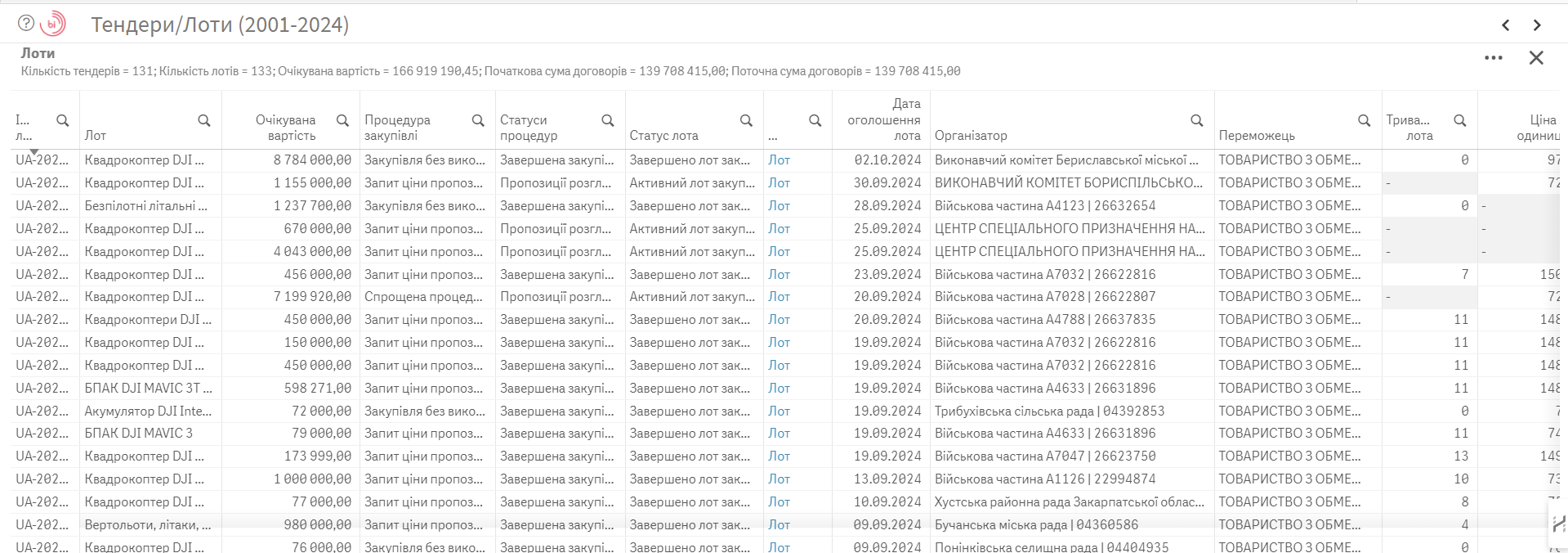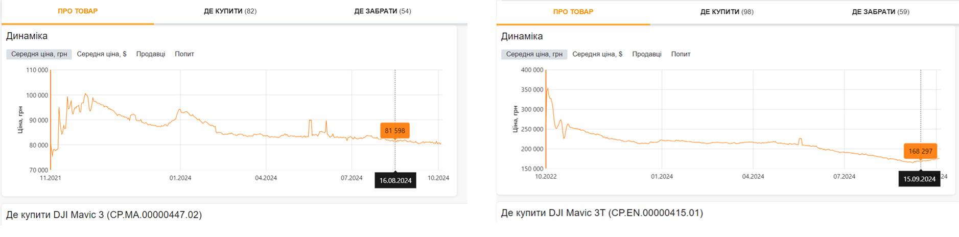 Загалом, дослідивши інші закупівлі, в яких переможцем став "Екодрон", Центр публічних закупівель встановив, що ціни на дрони відповідають ринковим. Наприклад, управління оборонної роботи Запорізької обласної державної адміністрації у серпні придбало в цієї фірми DJI Mavik 3 за ціною 71,9 тисячі гривень - за даними ресурсу hotline середня вартість такого мавіки на ринку була 80 тисячі гривень. А центр спеціального призначення національної гвардії України (військова частина 3073) у вересні придбав в "Екодроні" DJI Mavik 3 Thermal за 151,5 тисячі гривень - на ринку такий в середині коштував 168 тисяч гривень.