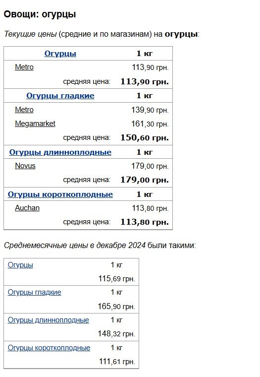 Зокрема, огірки продемонстрували різноспрямований рух цін: звичайні огірки трохи подешевшали з 115,69 до 113,90 грн за кілограм, гладкі огірки помітно знизилися в ціні - з 165,90 до 150,60 грн - З 148,32 до 179,00 грн за кілограм, а короткоплідні показали невелике зростання із 111,61 до 113,80 грн.