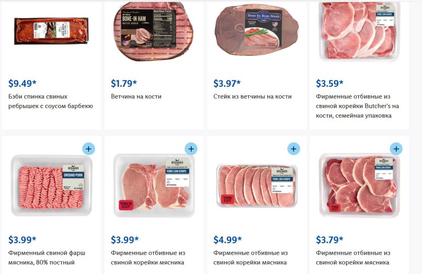 Візьмемо, наприклад, супермаркет Lidl. Зокрема, тут свинячі ребра можна придбати за ціною 9,49 доларів (392.89 грн), стейк обійдеться в 15,99 доларів (661.98 грн). Любителі відбивних зі свинячої корейки можуть придбати їх за 4,99 доларів (206.58 грн).