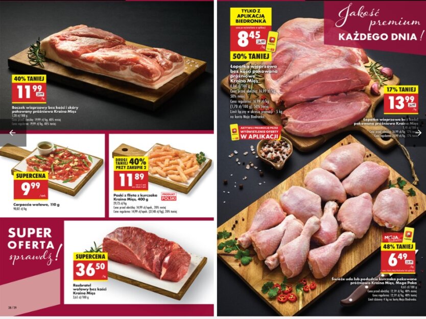 Тут м’ясо можна знайти за ціною від 8,45 zł (83.65 грн) до 36,50 злотих (361.35 грн). Зокрема, ребра продаються за 18,99 zł (188 грн).