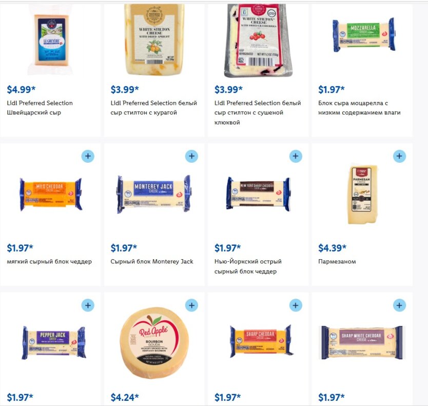 Сир чеддер продається за 3,99 доларів (165.19 грн), моцарелу можна знайти за 1,97 доларів (81.55 грн), пармезан – 4,39 доларів (181.74 грн).
