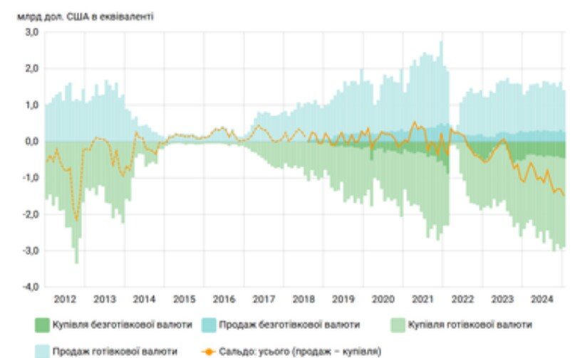 Цікаво відзначити, що порівняно з попереднім місяцем (груднем 2024 року) обсяг купівлі валюти зріс на 13,6%. Більше того, такого високого показника купівлі валюти не спостерігалося вже 12 років – останній раз подібний обсяг фіксували у листопаді 2012 року, коли населення придбало валюти на 1,523 мільярда доларів.