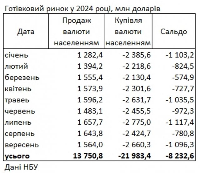 У серпні обсяг купівлі американської валюти сягнув купили 780,8 млн доларів. Якщо враховувати зміни з початку 2024 року, українці купили 8,233 млрд доларів.