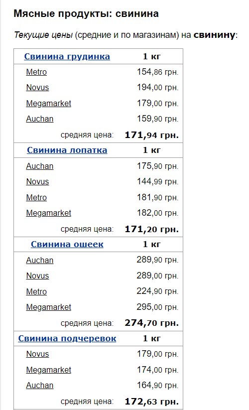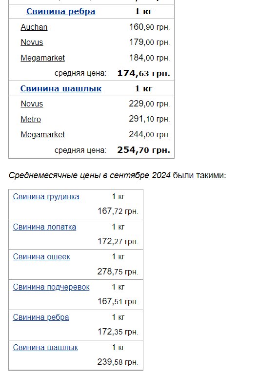 Ціни на свинину в супермаркетахЗагалом ціни на свинину на ринку "Столичний" дещо нижчі, ніж у супермаркетах. Однак, різниця в цінах варіюється в залежності від конкретної частини туші.