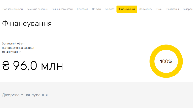 Загальний бюджет будівництва – 96 мільйонів гривень, фінансування здійснюється з місцевого та державного бюджетів.