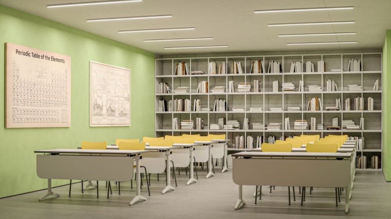 Оснащення відповідатиме стандартам Нової української школи: у закладі будуть сучасні меблі, мультимедійне обладнання та система освітлення, що працюватиме навіть при відключенні електроенергії. Проєкт передбачає ліфти, поручні, адаптовані санвузли й тактильні доріжки для людей із порушенням зору.
