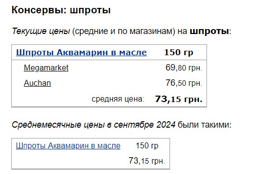 При цьому вартість шпроту Аквамарин в олії 150 г залишилася незмінною на рівні 73,15 грн.