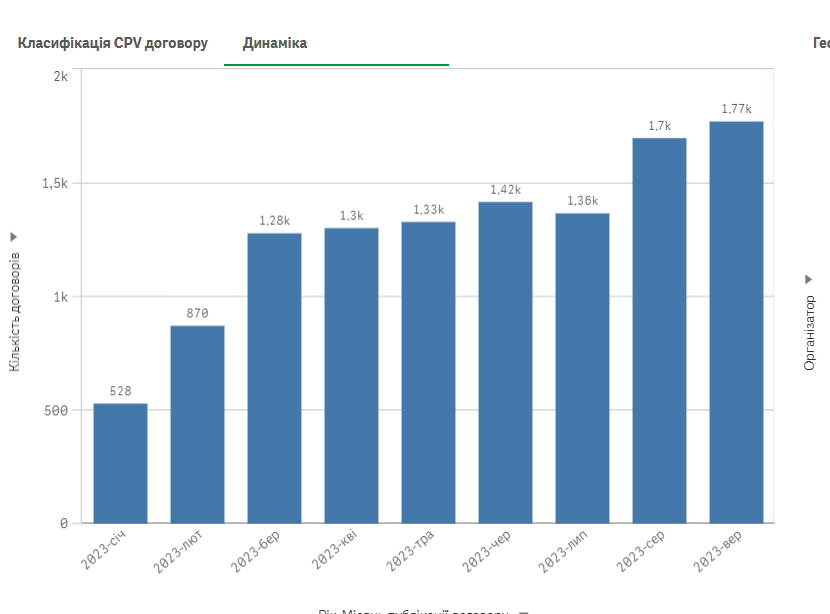 Активно проводити закупівлі на Херсонщині почали в березні 2023 року. Проводили і до того, але сплеск активності припав саме на березень. З того часу закупівельна активність лише зростала (з неістотними падіннями) та у вересні була найбільшою.