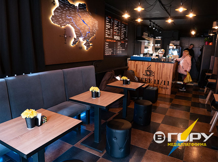 Кав’ярня з виразною назвою “Кава 11/11”. У херсонців до назви не виникає жодних питань. 11/11 – магічне число для херсонців. Вони назавжди запам’ятали 11 листопада 2022 року, коли воїни ЗСУ звільнили їхнє рідне місто від російських окупантів. Олексій, власник кав’ярні, всю окупацію пробув у Херсоні. Тому не дивно, що йому захотілося якось закарбувати цю дату.