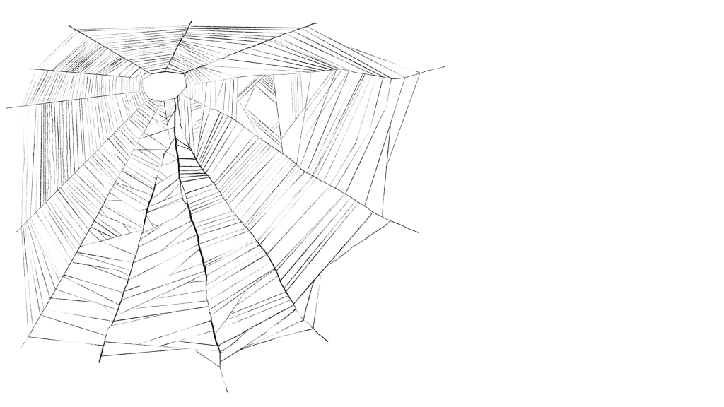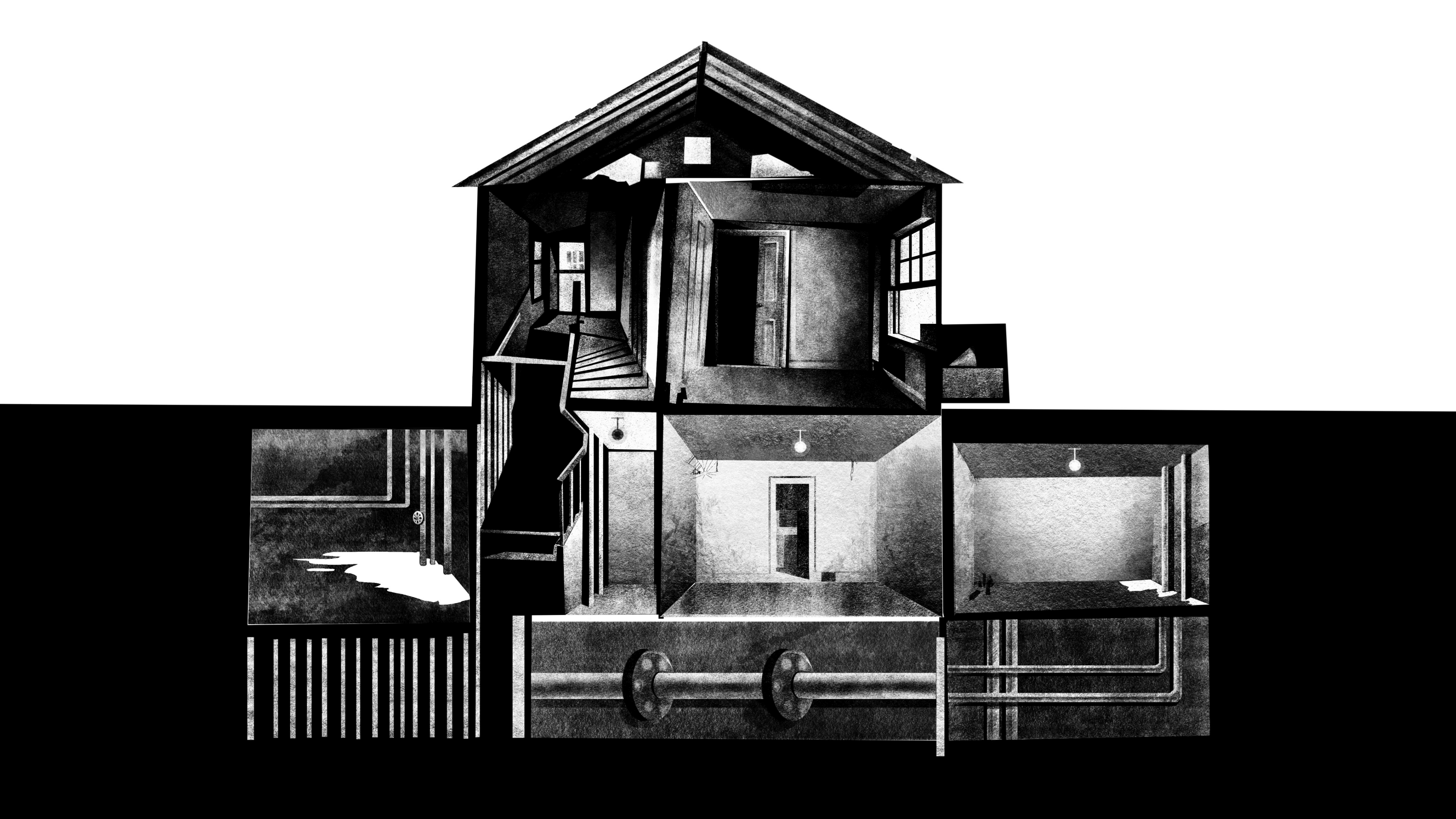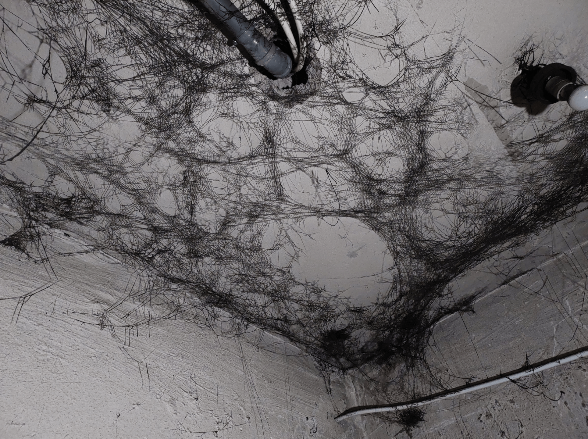 Коли окупанти тікали з міста, вони палили у підвальному коридорі різні предмети, щоб знищити сліди своїх злочинів. Так сіре царство павуків вкрилося чорною кіптявою. Павуки втекли або загинули, але павутиння лишилося – чорні візерунки назавжди в‘їлися в усі поверхні.