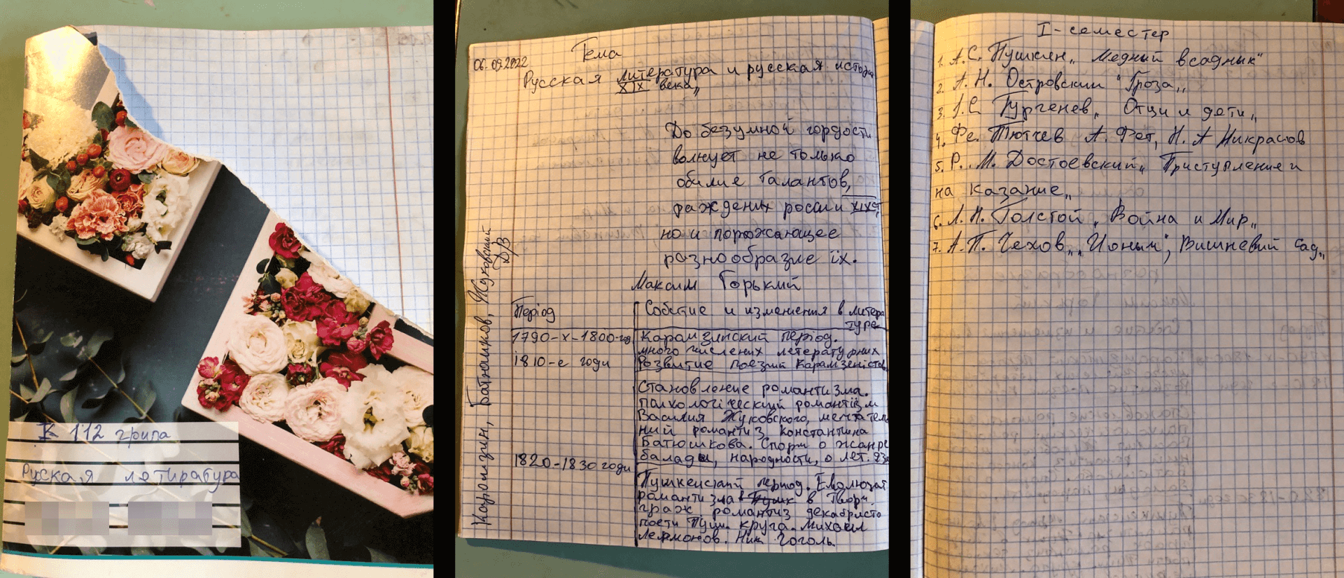 Конспект з російської літератури, який під тортурами примушували вести одного з ув’язнених. Фото: Дмитро Фіонік