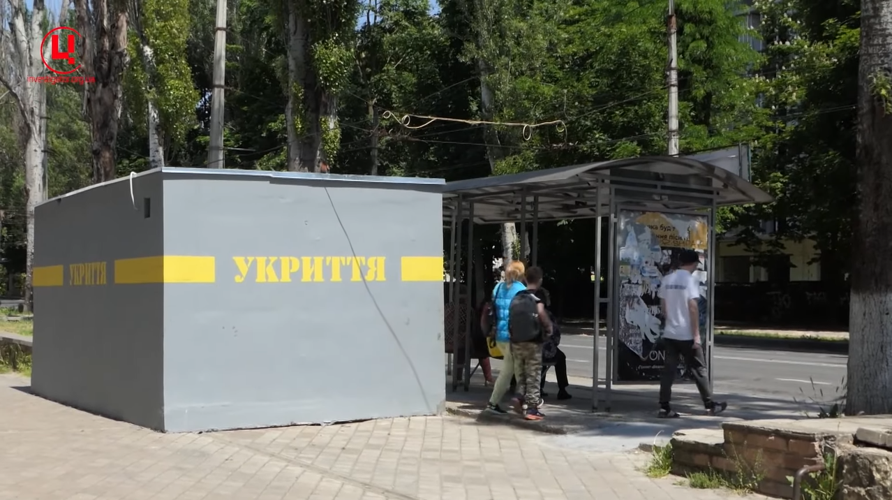 Протиуламкове укриття на зупинці громадського транспорту у Херсоні. Фото: investigator.org.ua