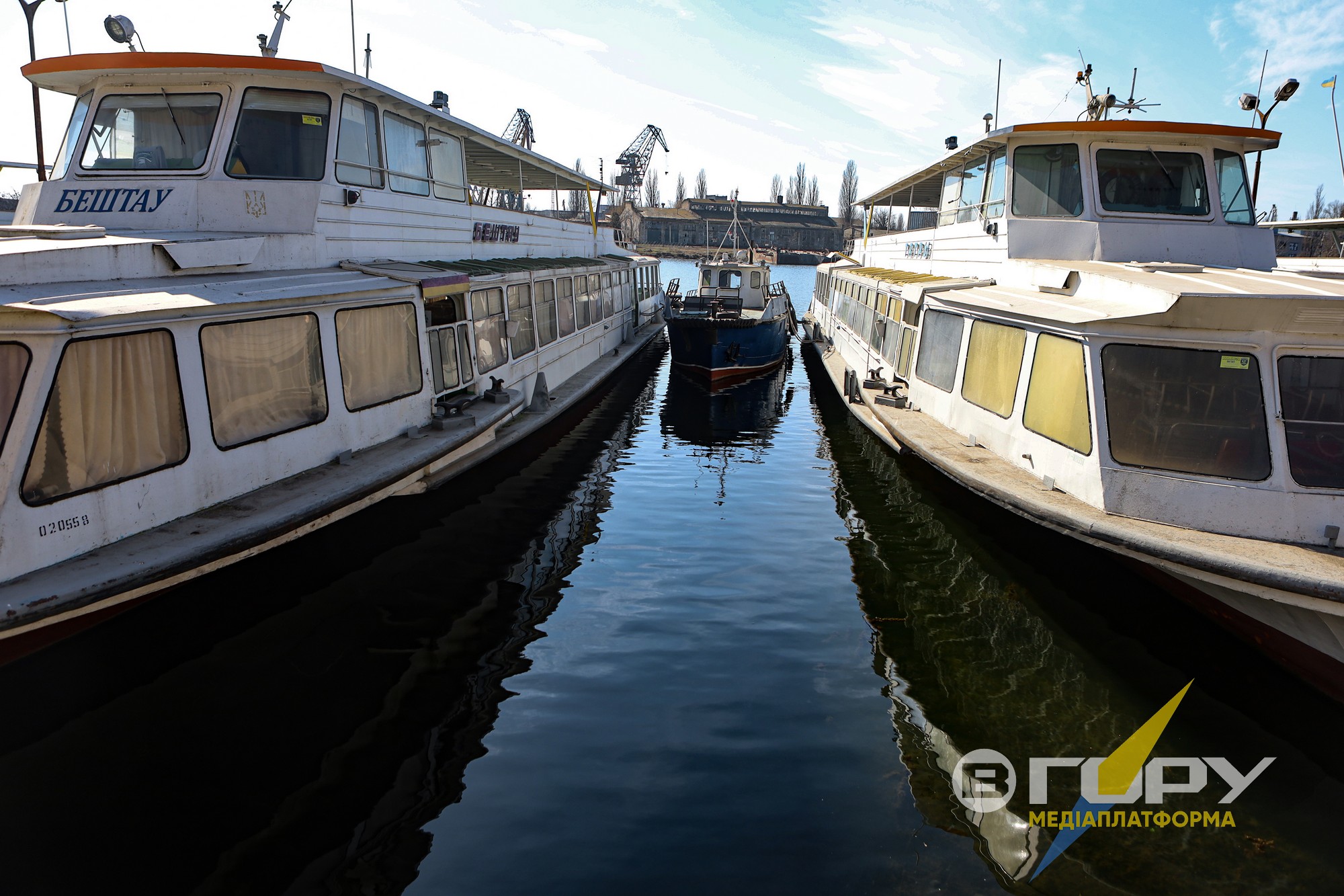 В очікуванні навігації біля причалів Річморвокзалу чекали на дачників річкові трамвайчики. Вже в листопаді на них із Херсона на лівий берег тікатимуть колаборанти та російські військові.