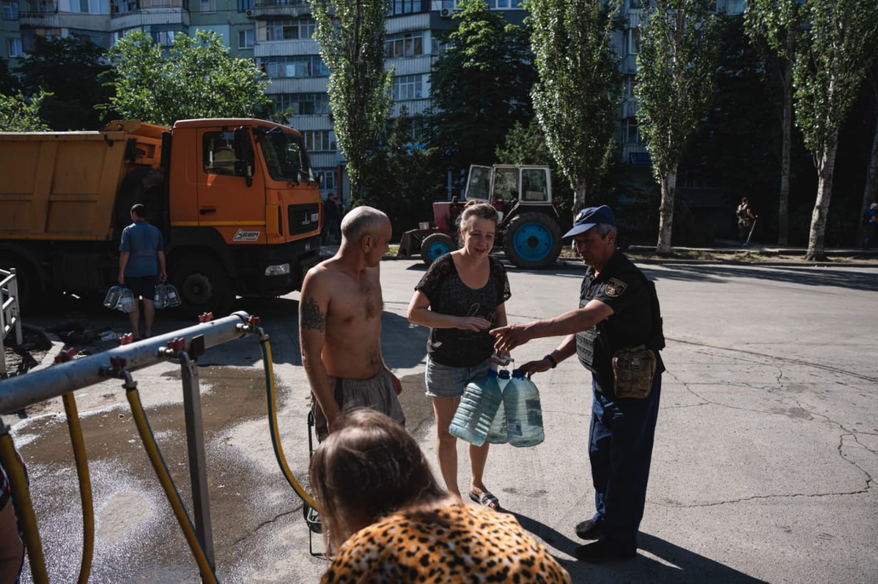 Тут щоранку збираються люди і чекають підвозу води від рятувальників ДСНС. Надзвичайники доставляють питну та технічну воду. Лише за вчора, 18 червня, підвезено понад 41 тонну, у тому числі 28 тонн питної.Загалом рятувальники доставили вже понад 442 тонни води, з них питної 324 тонни та 118 тонн технічної.