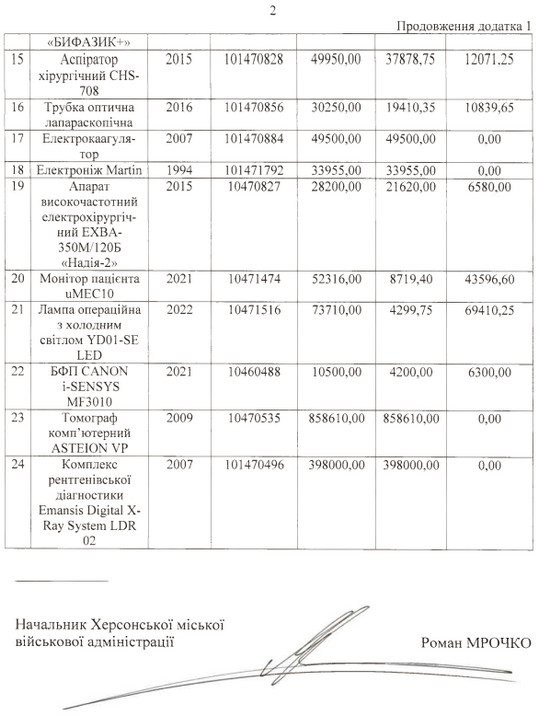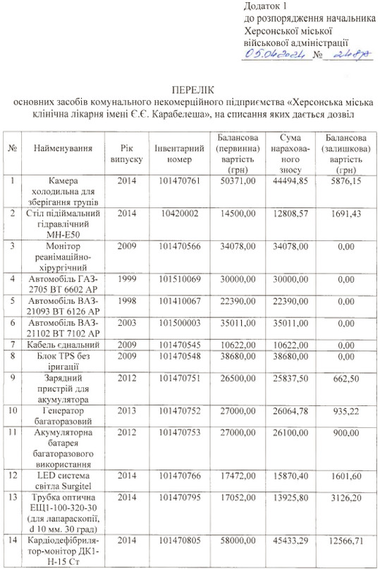 Трьом автомобілям, які дозволили списати лікарні імені Карабелеша, від 21 до 26 років. І ще 21 одиниці обладнання від 2 до 30 років.